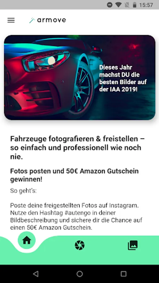 The photo app armove is based on the machine learning technology of autengo. The system automatically recognizes the shape of the imaged vehicle in the image and releases it, ie the background and all other elements in the image are removed. After that, the user can place the vehicle on a new background. For this purpose, the app offers a variety of templates.