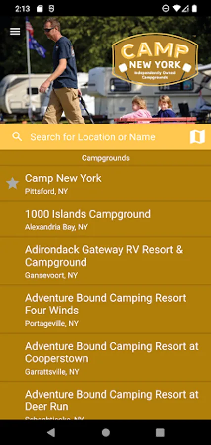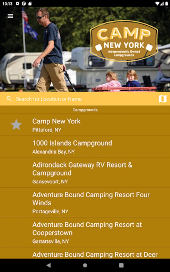 Download the free CAMP NEW YORK mobile app, to access up-to-date information on independently owned campgrounds and RV parks in the vacation regions across New York State. Our parks host thousands of RV sites, tent sites, and on-site rentals including cabins, cottages, RV units, yurts, and glamping tents. They are located close to many of the iconic destinations and attractions you want to visit, from Niagara Falls to the Adirondacks, in the Finger Lakes, up to the 1000 Islands, down into the Catskills and Hudson Valley, and all the way to the eastern shores of Long Island.