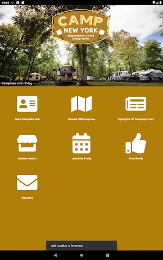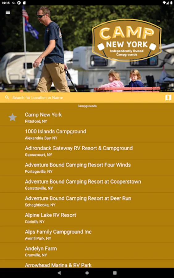 Descriptive listings and links for hundreds of New York campgrounds and RV parks, any one of which you can save in your favorites list on the app to get even more information and receive regular updates and event notifications customized by you for frequency and type.