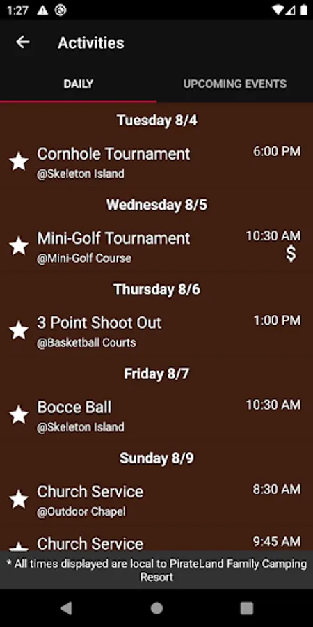 Use the Pirateland Android app to access all information you need to enjoy your stay at Pirateland.