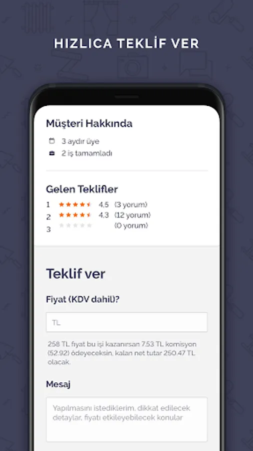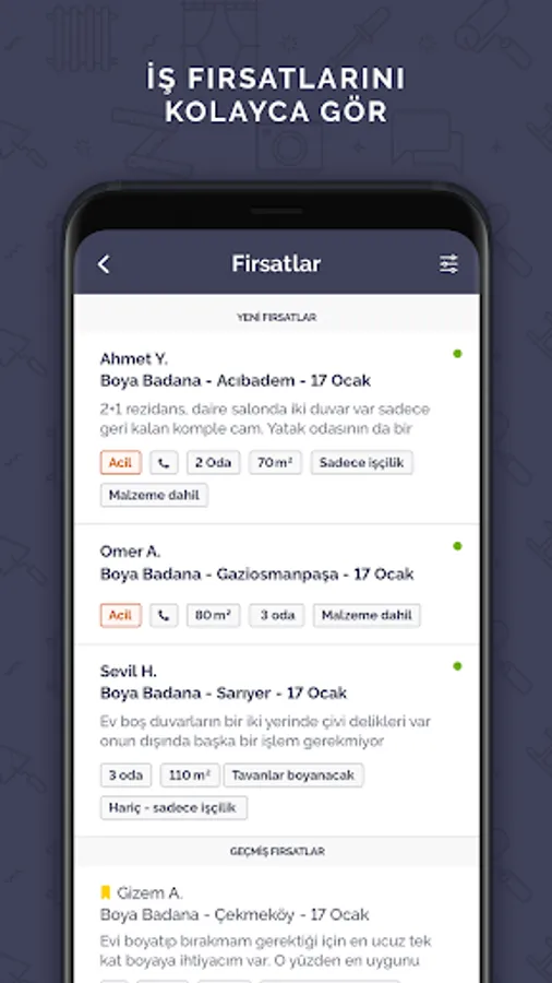 We share these demands with our service providers who comply with the wishes of our customers. You can bid for the jobs you want and gain more customers. It is also very practical to communicate through the application for the jobs you bid!