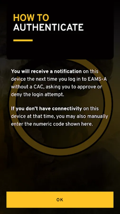 Protect your Army EAMS-A account by adding second factor authentication with Army MobileConnect. After logging in to EAMS-A as you normally would, MobileConnect will send a notification to your device, asking you to approve the login, or will generate a one-time passcode to use instead.