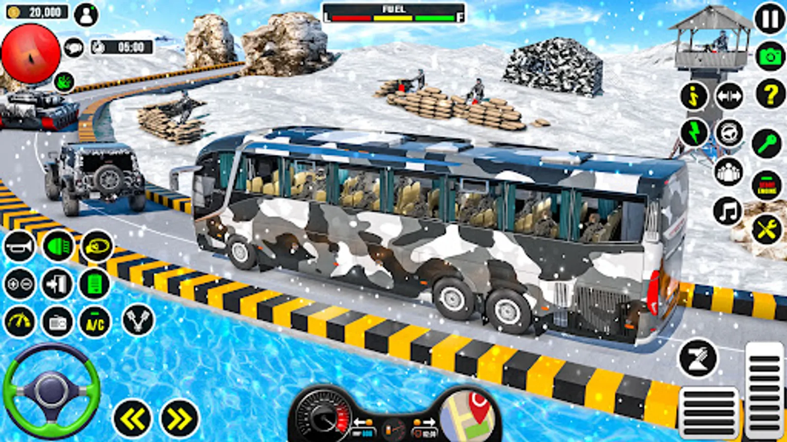 In this army coach driving game you are hired as a bus driver to perform the duty of army wala game, army bus driver to transport military forces.