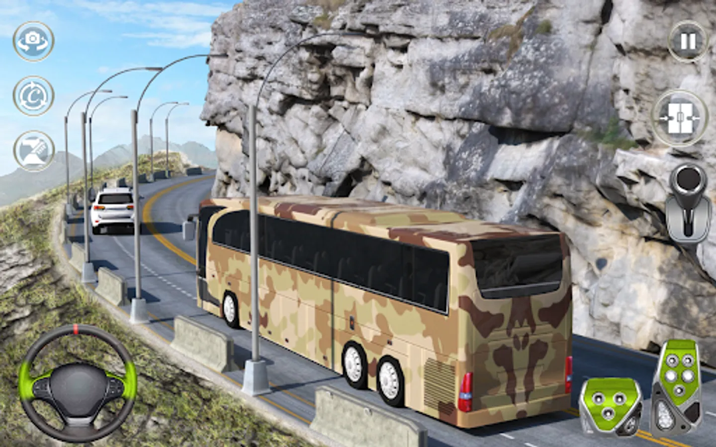 Get ready for the most thrilling off-road Army Bus Game: Bus Simulator - US Military Soldier Transporter 2022 to transport army commando to US army military training school base camp. Get hold on steering and perform best skills of army bus driving in Army Bus Driver: Bus Games 2022 on mountainous hill climb areas, improve your military bus driving skills and mental training follow instructions and reached in destination point on time in Army Bus Driver: Bus Games 2022. In this best Army Bus Driver: Bus Games 2022 perform multi levels and multiple tasks in this army bus game. Drive uphill army bus on uphill roads, drop sniper army commando on check posts safely. Extreme driving, excited impossible tracks, dangerous steep path, most hilly area and extreme weather condition in this Army Bus Driver: Bus Games 2022.