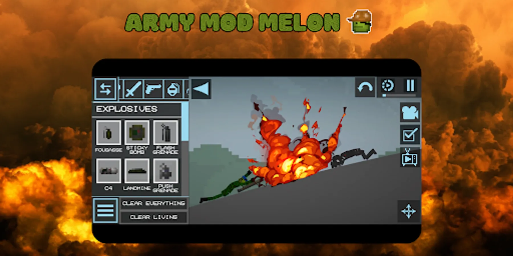 This is an unofficial application for scary army mod melon playground. The application helps to install the mod for the game Melon Playground, this is not a game, but an add-on with instructions! If you feel there are trademark violations which don't fall under the "fair use" rules, please contact us, we will unpublished it.