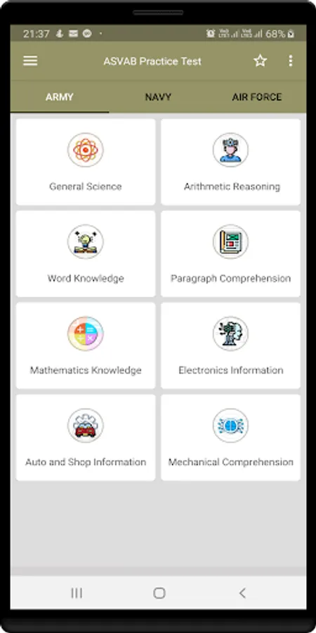 Disclaimer: This app is unofficial app of ASVAB or any other government/private organization and is absolutely free. You are advised to to cross check any information provided in this app.