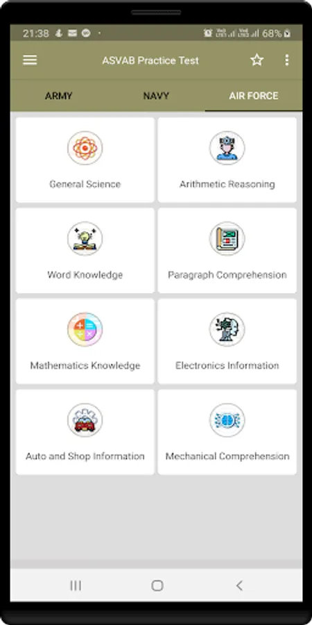 ASVAB Practice Test is the best ASVAB Practice Test apps on google play store. The ASVAB (Armed Services Vocational Aptitude Battery) is a multiple choice test . The exam is conducted by the United States Military Entrance Processing Command. It is used to determine qualification for enrollment in the United States armed forces.