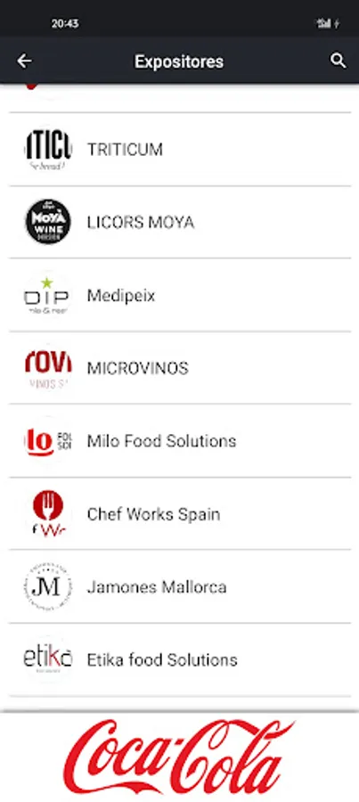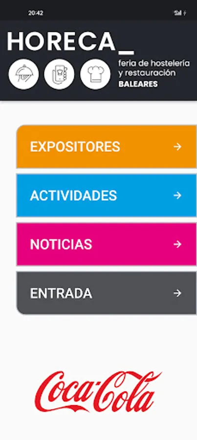 Horeca Mallorca application for visitors. It contains the entrance, information about the exhibitors, activities...