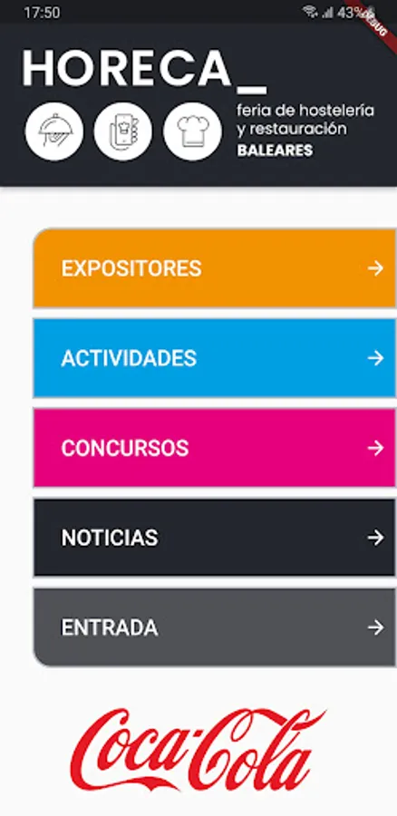 Horeca Menorca application. It contains the entrance, information about the exhibitors, activities...