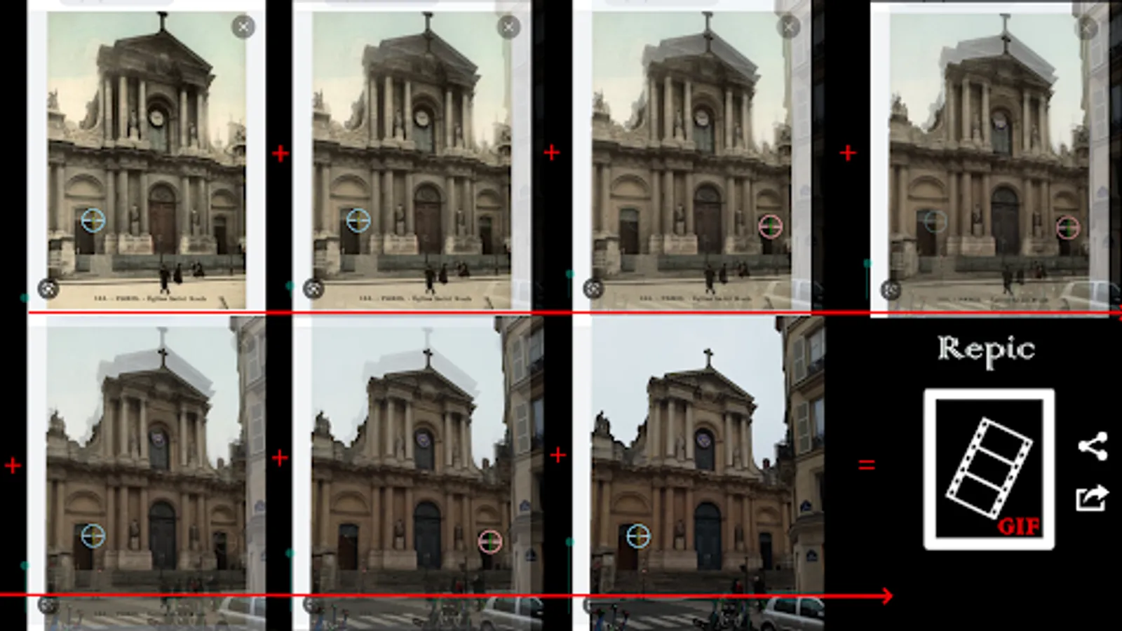 Superpose quickly two photos with a manually set of keypoints and generate a gif file with transparency animation showing the first image "before" becoming the second image "after".