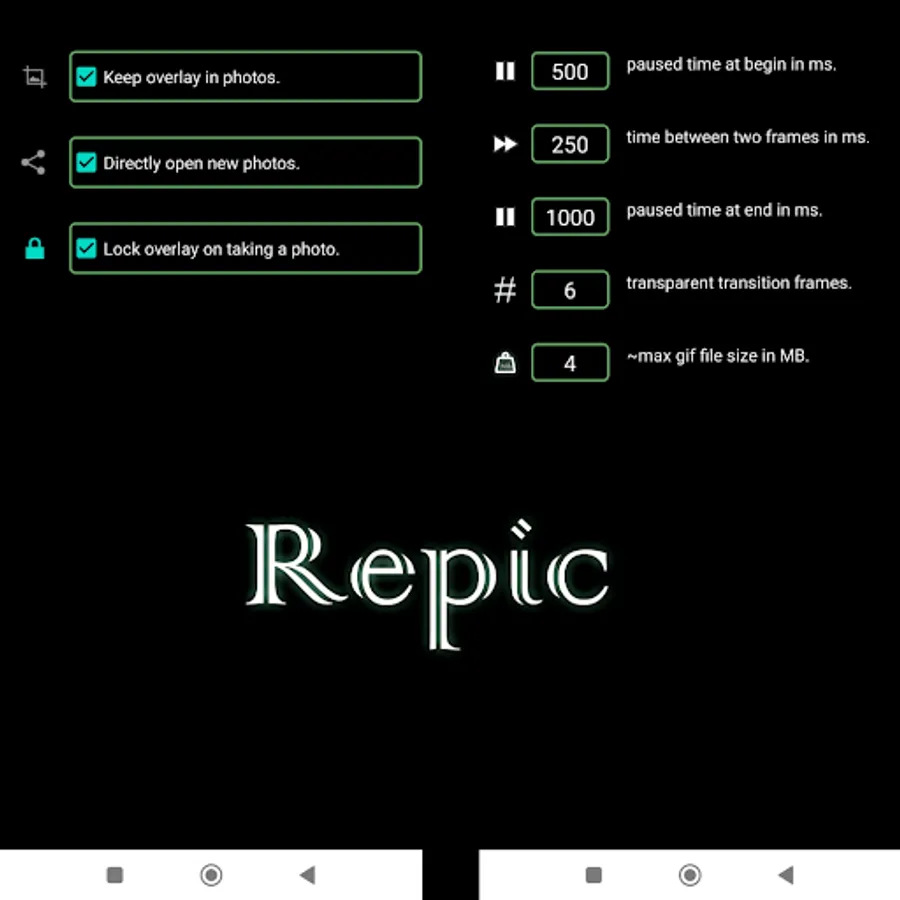 Take photos with an overlay image of your choice, position, scale, orientation and transparency, included or not in the saved image.