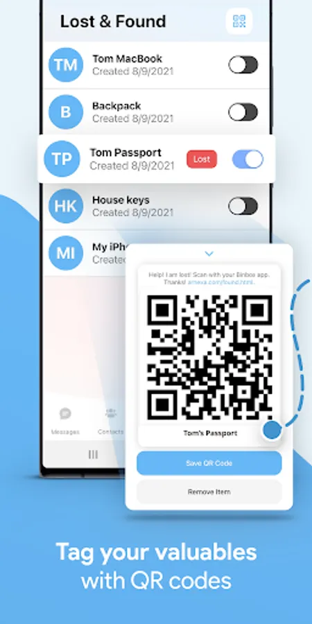 Binbox Messenger helps you find your lost valuables easily. Simply tag your valuables with a QR sticker. When someone finds your lost item, you get a message right in Binbox Messenger! And because tags are simply made of paper/plastic, there's no fear of someone tracking your location. You can generate tags freely in the app yourself. Or, else purchase pre-printed tags from Arnexa (only in the United States). How cool is that?