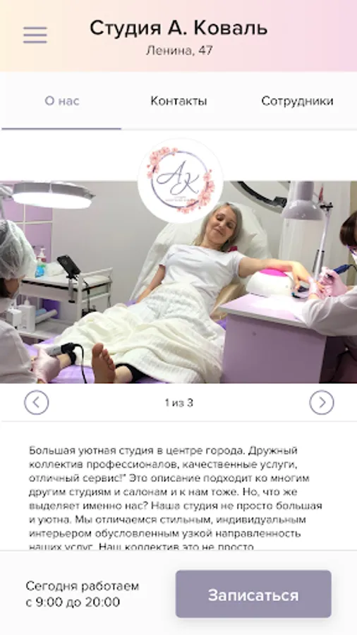- A personal account with a history of all previous and future visits, as well as favorite services