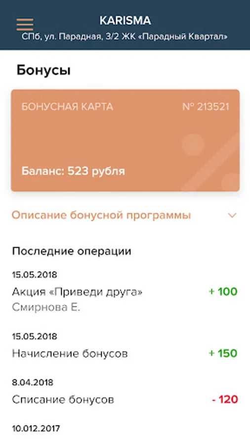 - Bonuses, their number, and the history of accrual and write-off