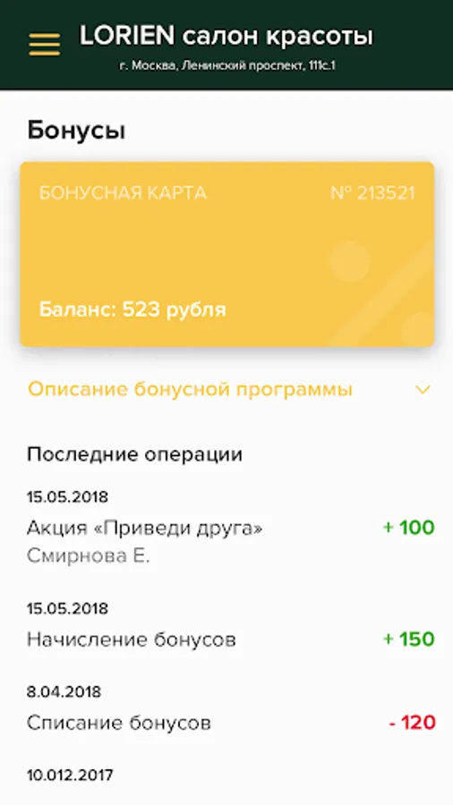 - A personal account with a history of all previous and future visits, as well as favorite services
