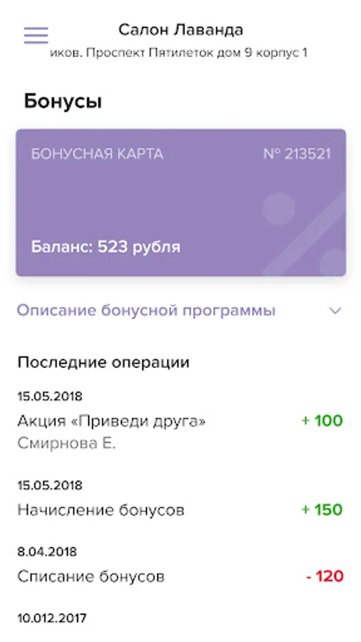 - A personal account with a history of all previous and future visits, as well as favorite services