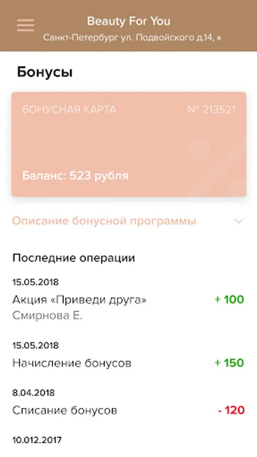 - Personal account with the history of all previous and future visits, as well as favorite services