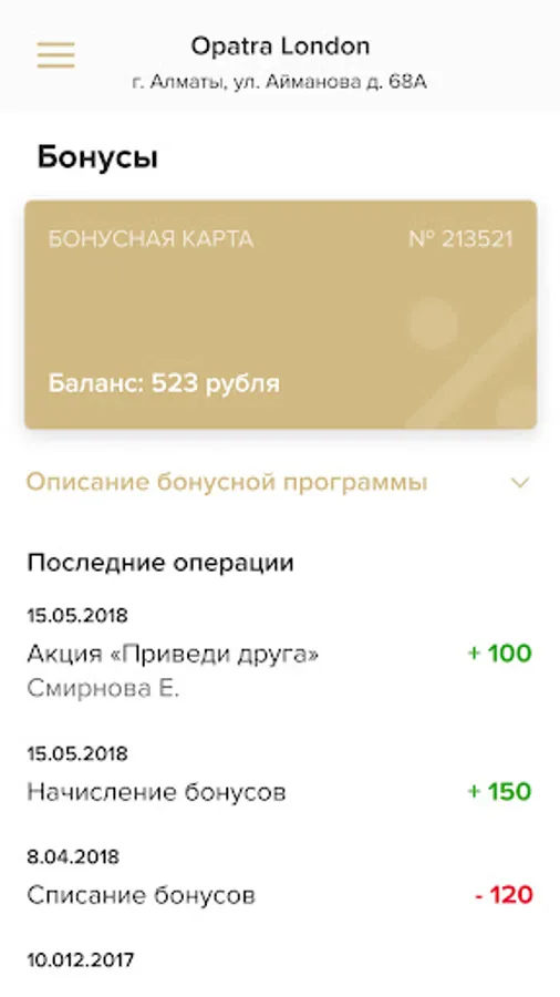 - Bonuses, their number, and the history of accrual and write-off