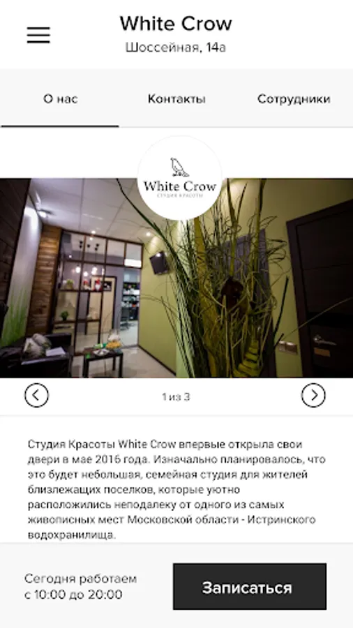 Beauty Studio White Crow first opened its doors in May 2016. It was originally planned that this would be a small, family-run studio for residents of nearby villages, who were comfortably located not far from one of the most picturesque places in the Moscow region - the Istra reservoir.
