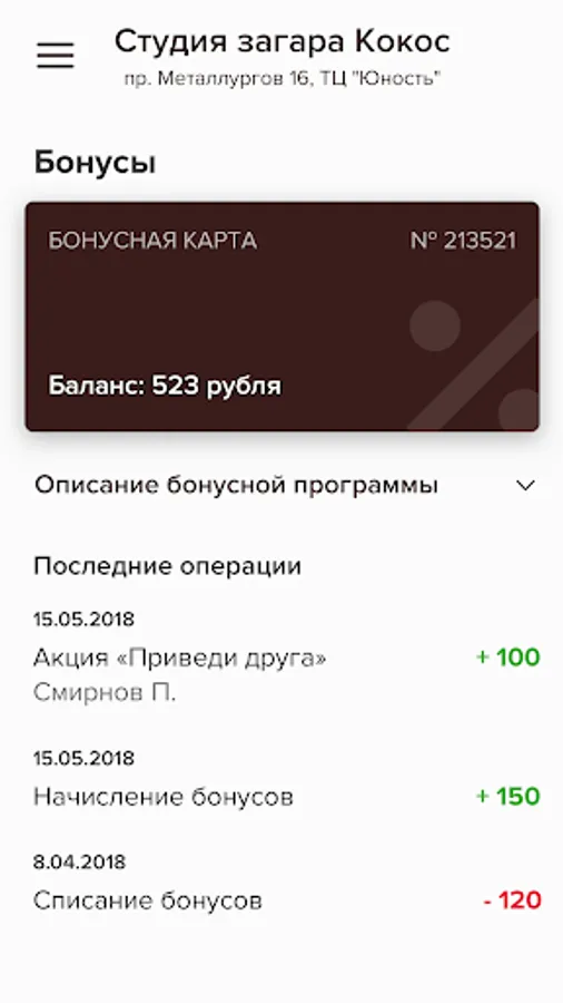 - Personal account with a history of all previous and future visits, as well as favorite services