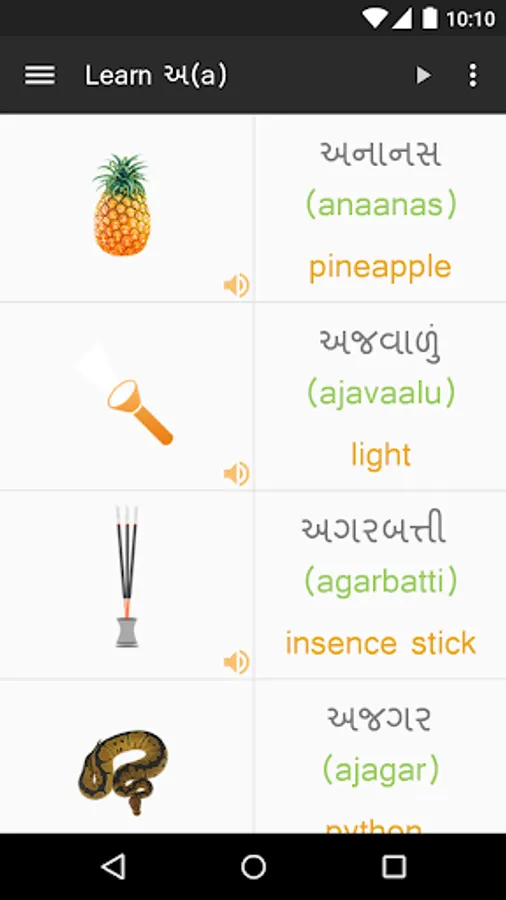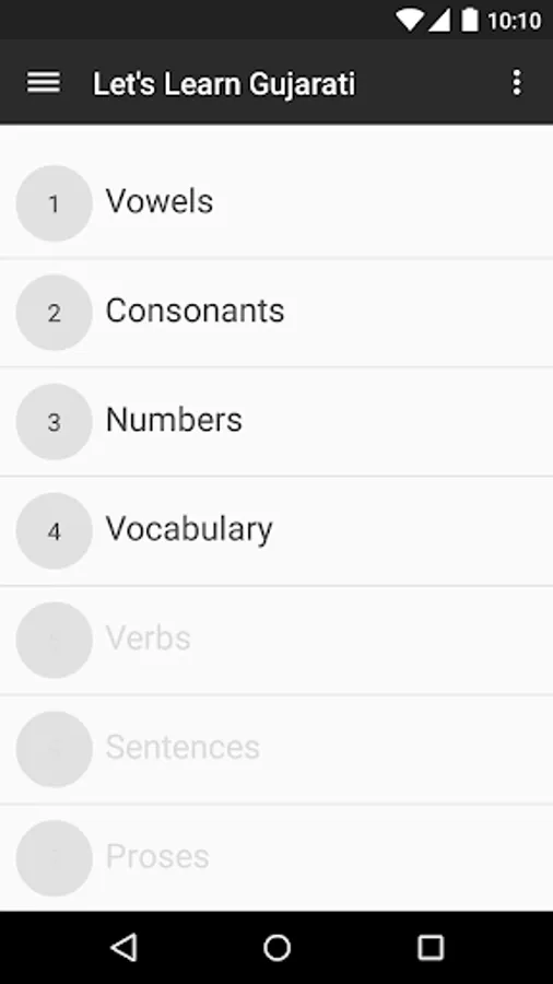 Learn Gujarati provides unique platform to users to learn Gujarati in an easy and interactive way.