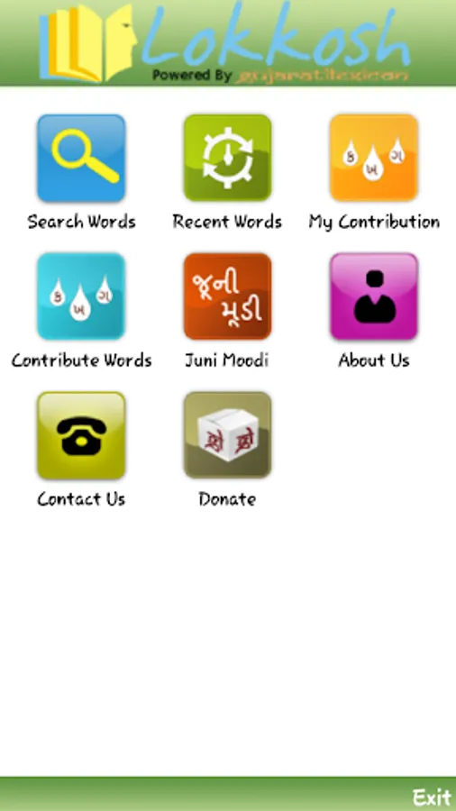 Lokkosh is the effort to compile the exceptional words which are not in Gujarati dictionaries though the most popular in day-to-day lives of Gujaratis. People can exchange and share their Gujarati Language knowledge by contributing words. Primer of Lokkosh comprises all the words collected from various sources.