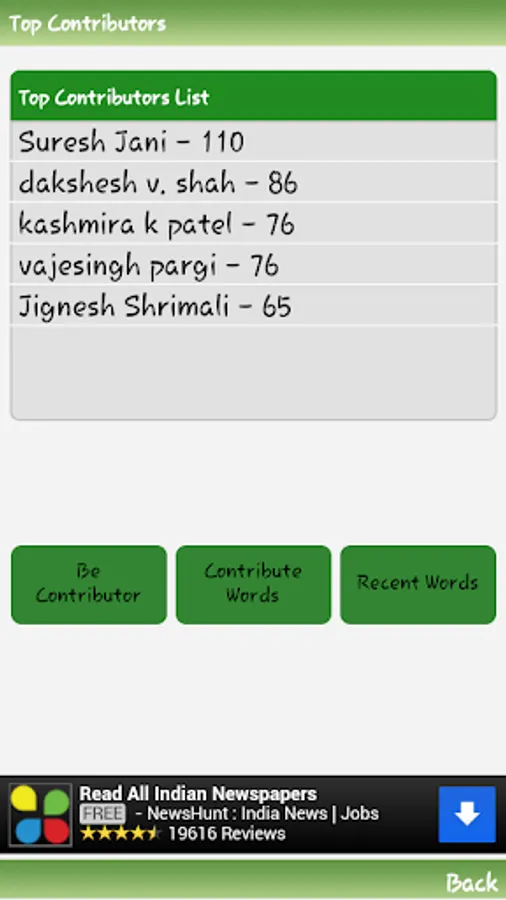 • Review List Of Your Contributed Words