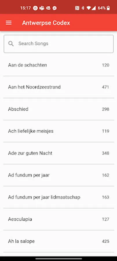 This app contains the songs in the different student codices used in Antwerp. Currently only the Antwerp and old red codex are in it.