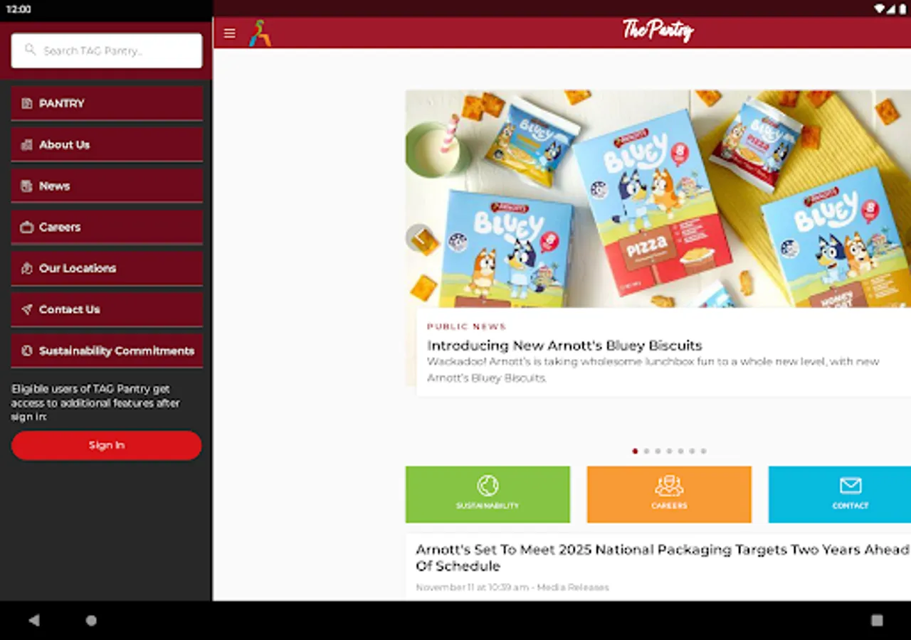 The Arnott's Group Pantry is an app designed to bring our community together - providing insights into our organisation's culture, latest happenings, and our delicious products.