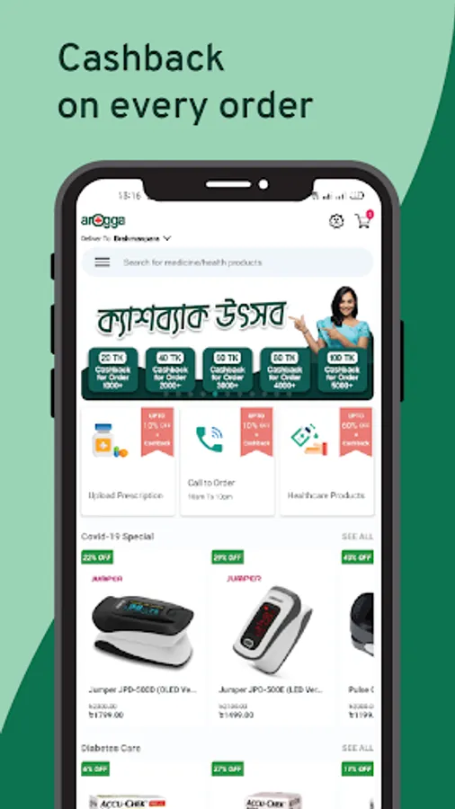 With Arogga app, getting the medicine you need is simple. Download the easy-to-use Arogga App to conveniently order your medicines from anywhere, at anytime. Just tap the App, upload your required medications, and your order will be delivered at your doorstep. Use the Arogga healthcare app to Order/Refill Your Medicines, Store Your Medical Records, Track Your Order, Check Arogga cash, Refer Your Friends & Earn!