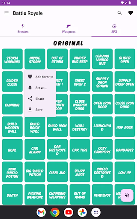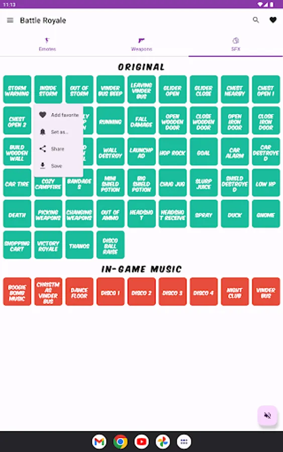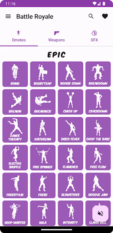 Share any dance or emote sound you like from Battle Royale with this app!