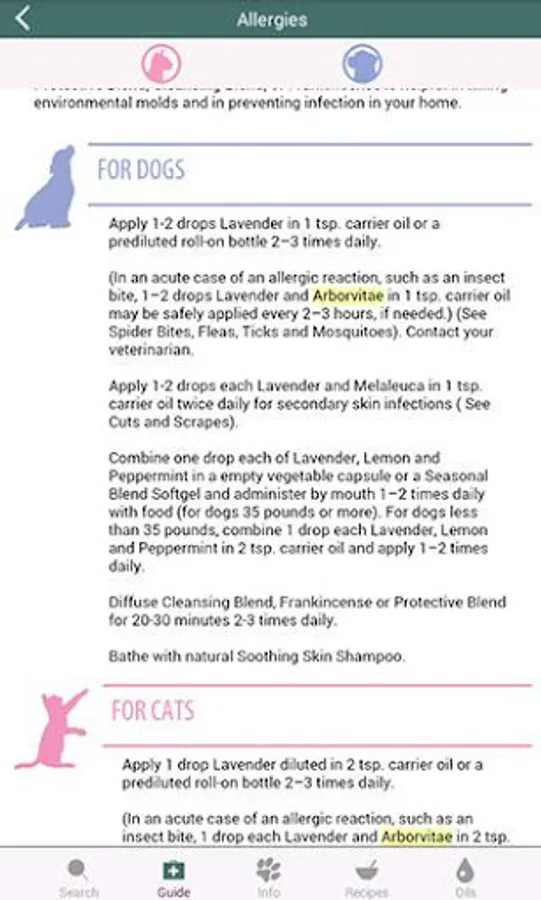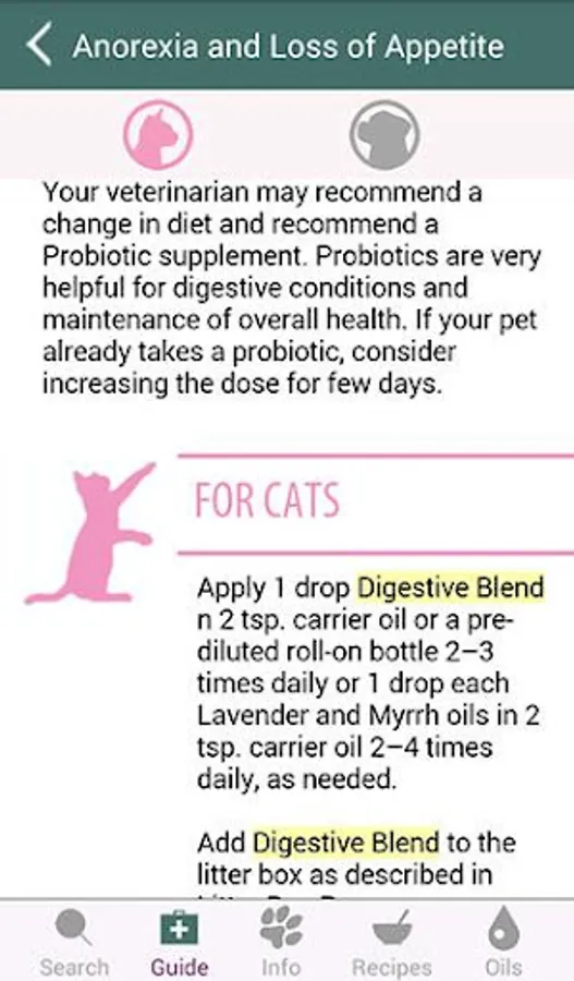 • Oil recommendations for dogs and cats.