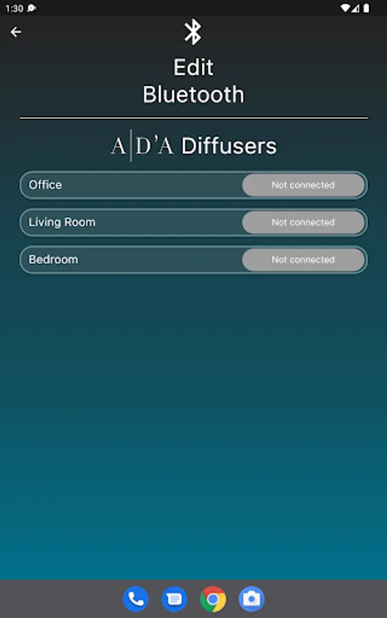 Having pioneered the ultimate multisensory fragrance system, Arome d’Art now offers remote functionality to support an experience entirely your own. Unparalleled fragrance is at your fingertips as you create your personalized system, connecting the app to your diffuser(s) using advanced Bluetooth technology. Set a timer for your diffusers and turn them on and off with a single touch as you wander through rows of redolent bitter orange trees in Italy and drink in the serene lavender fields of France. Simplicity has never before been this elegant.