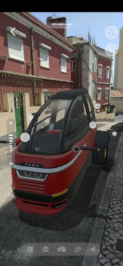 You can also use the “TUGA Augmented Reality Experience” module to place your preferable TUGA model wherever you want (in your garage, in the street, near your door, or even in your leaving room) and explore all his innovative abilities and differentiation. In the AR environment, change the model and select your favorite color, scale, move or rotate it to place it in the best spot to take the perfect AR photo in a real scenario and send it to your friends. You can also visit his interiors or experience all its amazing features like expand the chassis, open the canopy, retract the rear-axle, and so many other unique features.