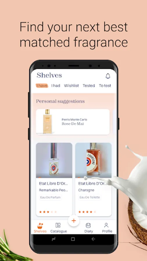 Aromoshelf app allows you to create your perfume wardrobe, capture scent impressions and wisely plan your future perfume purchases. The application provides you with an extensive fragrance catalog and community where you can share your experience and connect with other perfume lovers.