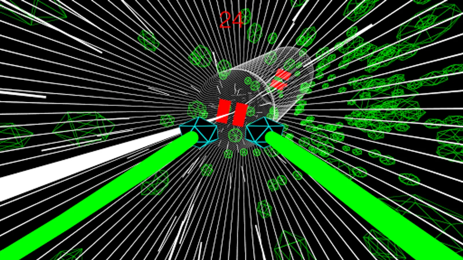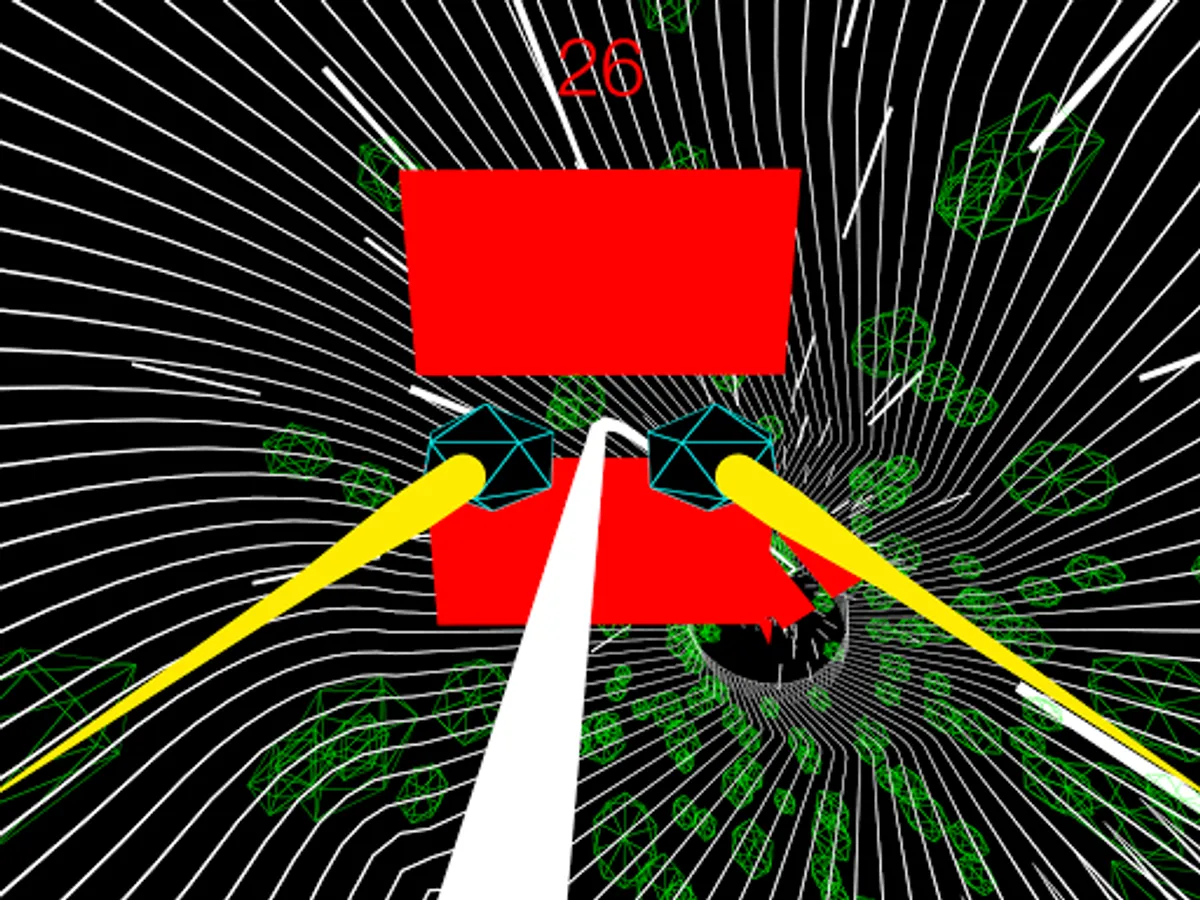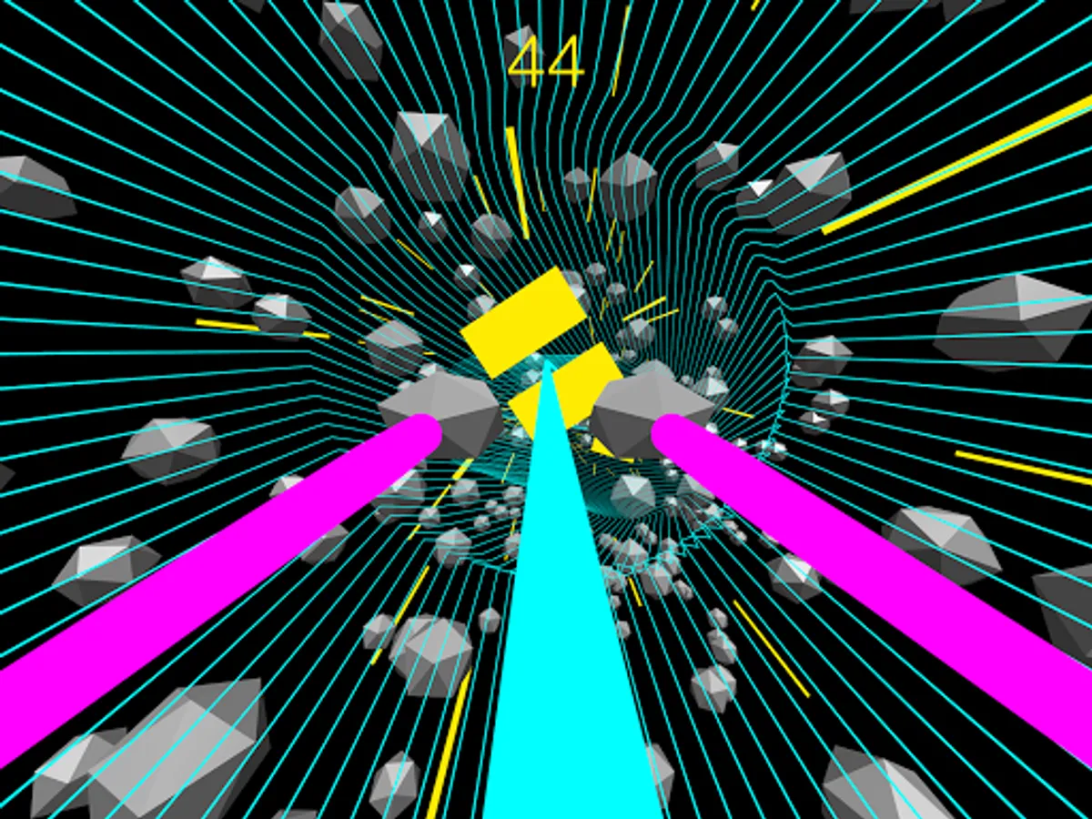 Take control of two meteorites in this fast-paced high score game while you rush through a trippy galaxy. Rotate the meteorites through the obstacles. If you fail once, you will have one meteorite left and switch from rotating to dodging controls. You can play in normal mode or in three different wireframe modes.