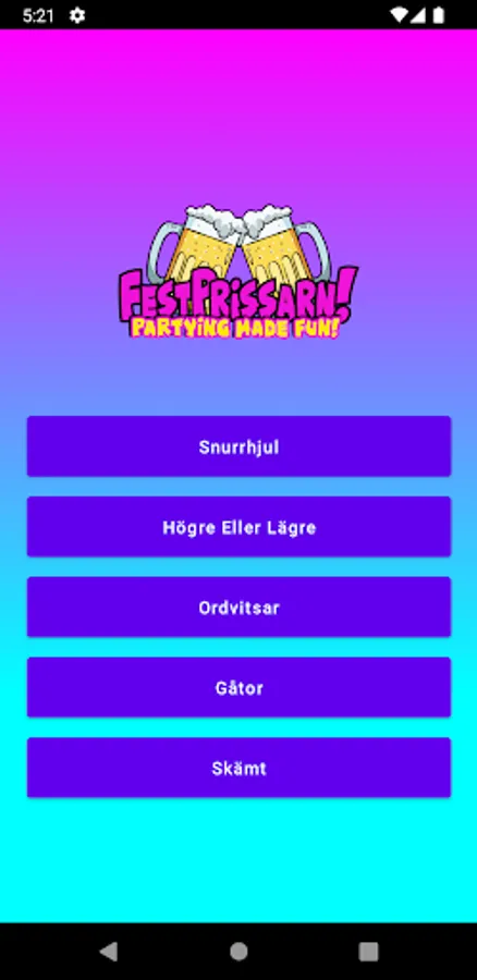 Festprissarn is an app with various pre-party games/games such as, higher or lower, roulette, puns, riddles and jokes.
