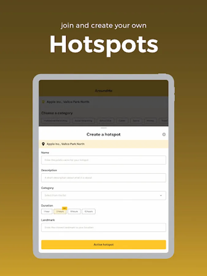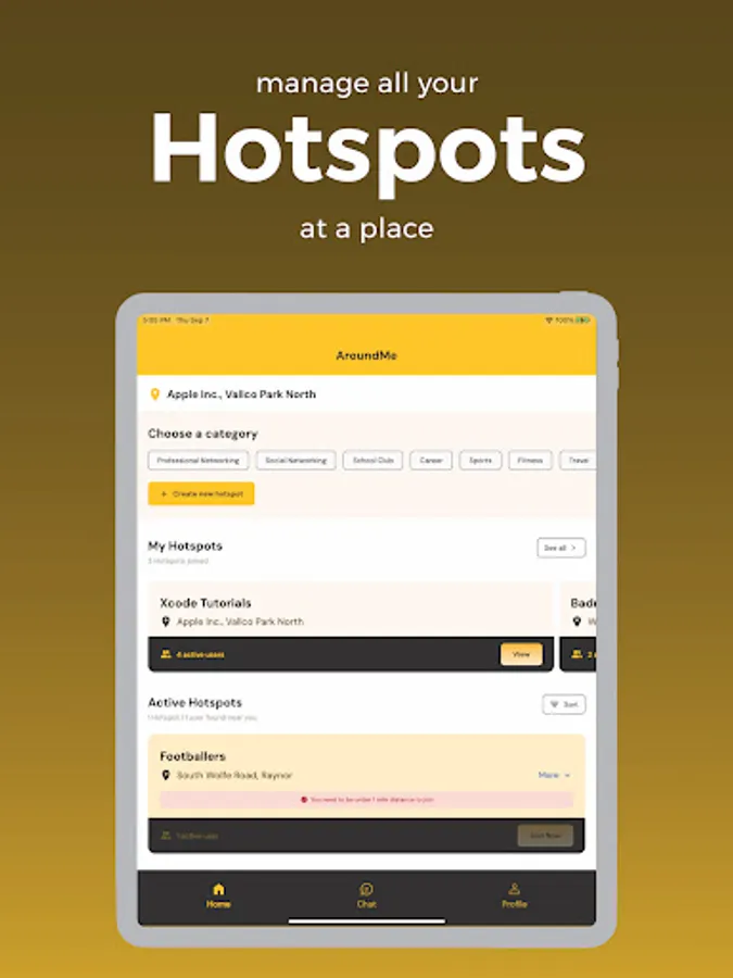 - Hotspots: Instant meetups with professionals in shared interests' locations