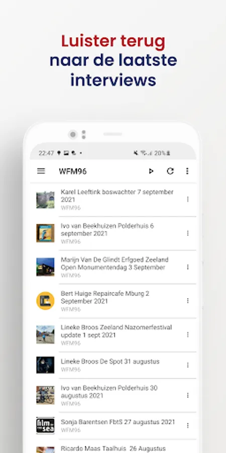 In the WFM96 App you can listen to your favorite radio station anytime and anywhere, stay informed of the latest news and listen back to the best interviews.