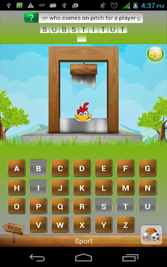 You can develop good vocabulary by playing Woodpecker Hangman regularly. You have multiple chances are given to guess the words. Woodpecker Hangman is designed for everyone including kids, teenagers and for those who like difficult challenges. Scores are given on right guesses and with wrong guess deduction is made in the score, with score deduction user also lost the chance and eventually cause the death of the woodpecker.