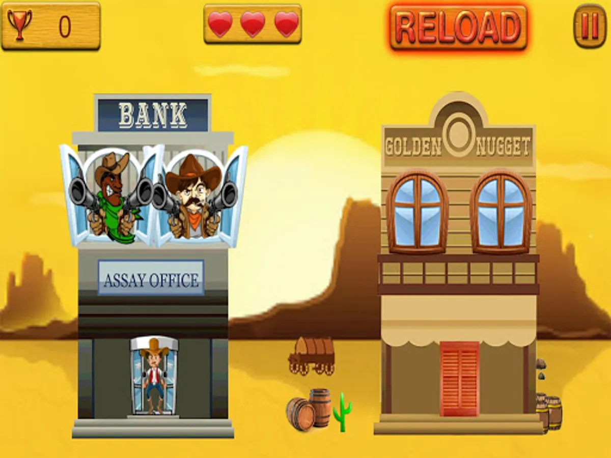 No option for surrender and to take prisoner for these evil criminals in Western Cowboy Blood Shooter, shoot them before you get shot by them. Keep your eyes on the windows and doors and finger on your pistol trigger to shoot them on sight before got shot by them by just taping on them. With three life chances how much criminals will be taken care of by you???