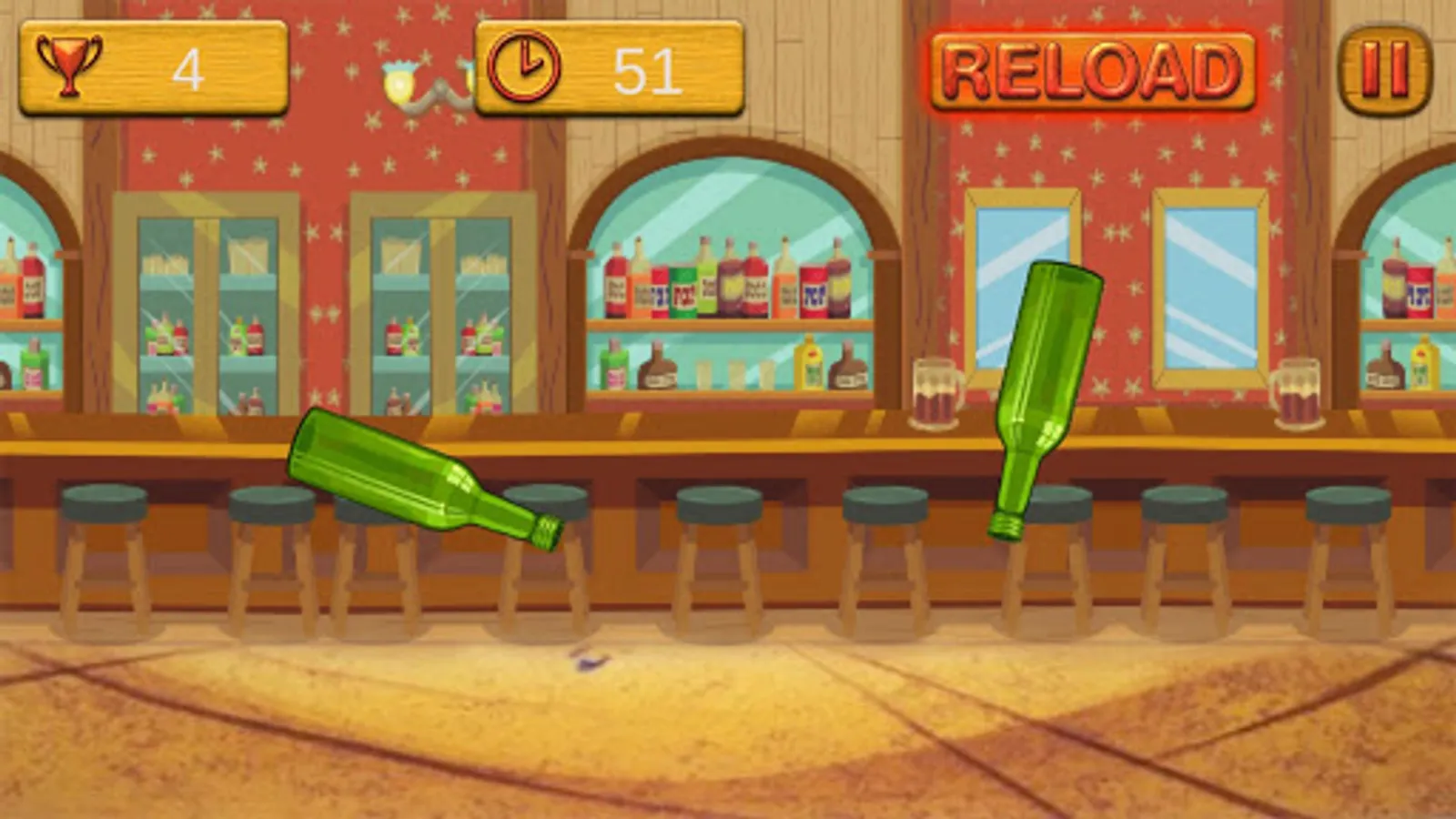 Sharpen your skills by hitting the bottles in the bar, shoot as many bottles as you can in the limited time to become expert shooter in the practice mode.