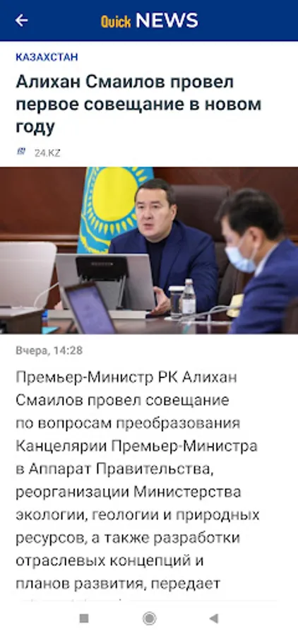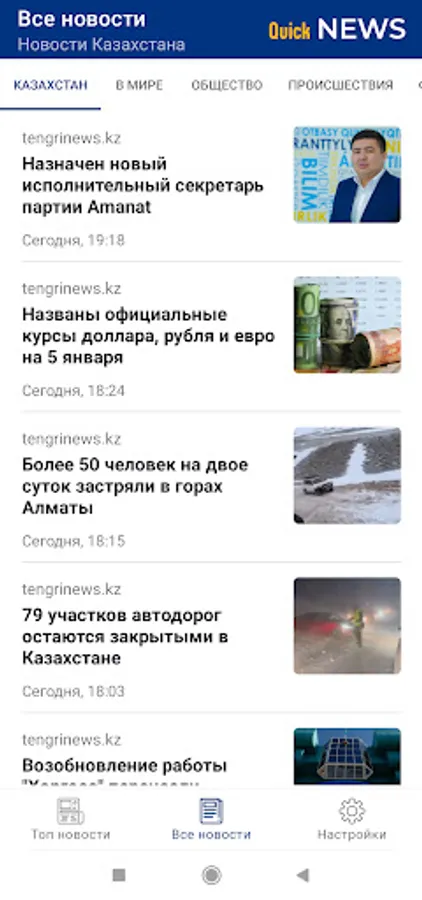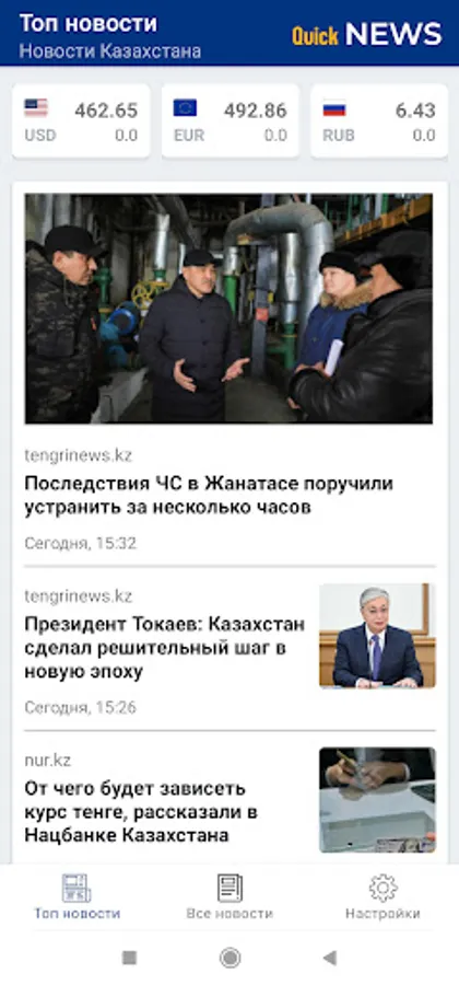 Quick News is a free and convenient application for reading news materials from popular news resources of Kazakhstan on various topics: important events in the Republic of Kazakhstan and the world, incidents, politics and economics, finance, sports, technology, health and show business.