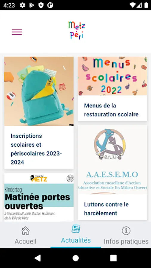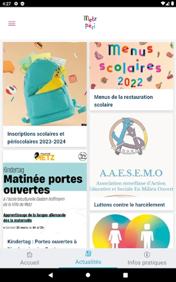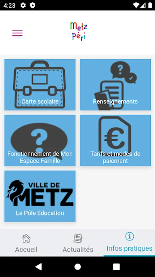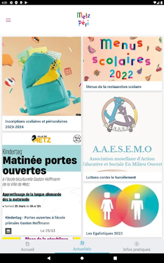 Application of the City of Metz which allows you to book extracurricular activities for your child, in kindergarten or elementary