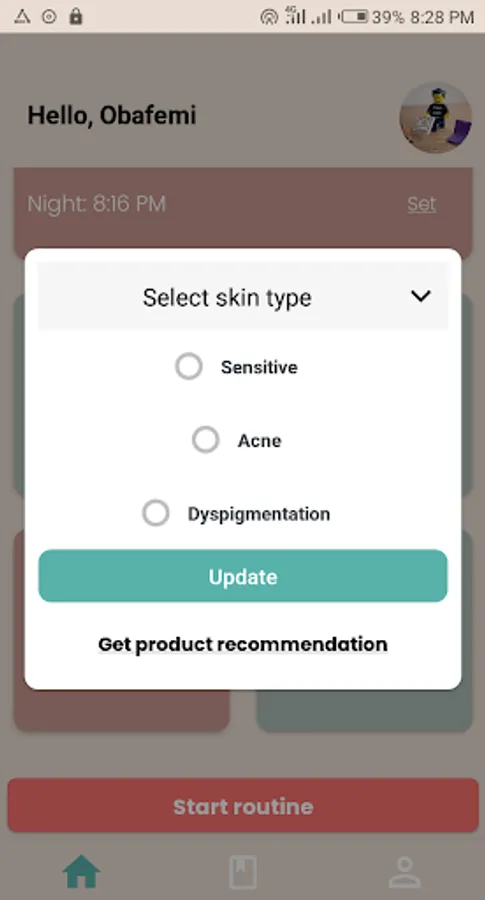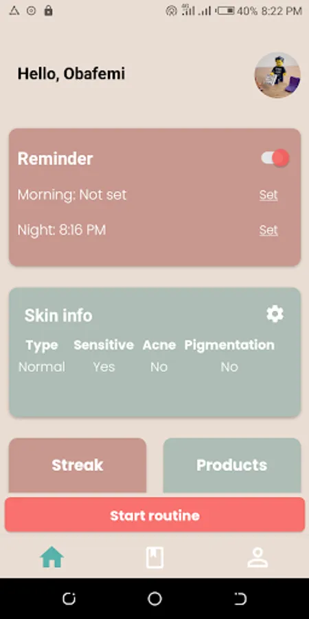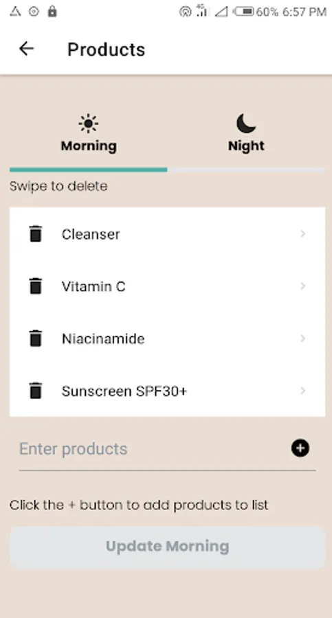 2. Timer for your routine process and streak to encourage consistency. the timer can be paused between products and users can preselect the products they want to use for each routine.