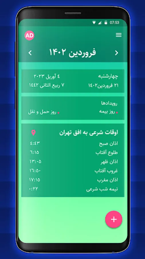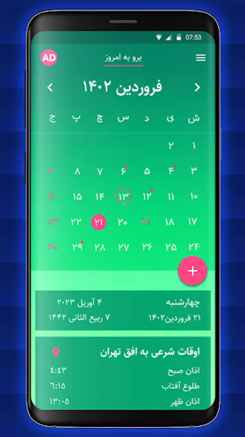 You can easily add your desired events, birthdays and occasions in the 1402 calendar and never forget them. The Persian calendar 1402 has interesting and attractive features, including showing the religious times of different cities.