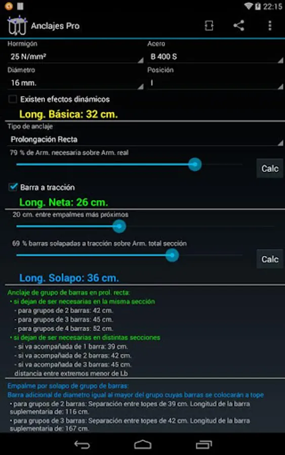 Calculate the lengths of anchor overlaps, distances and coatings reinforced concrete structures according to the instruction of Structural Concrete EHE-2008.