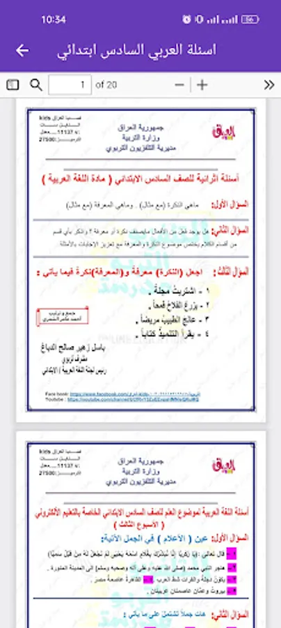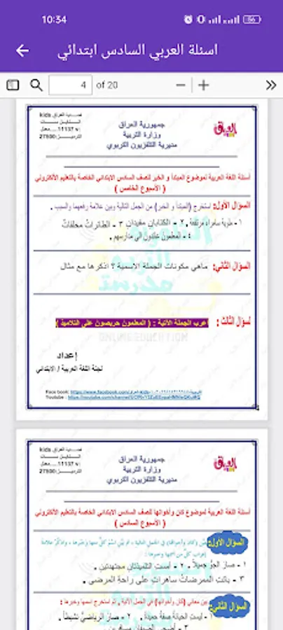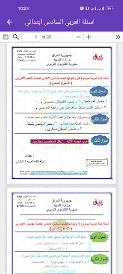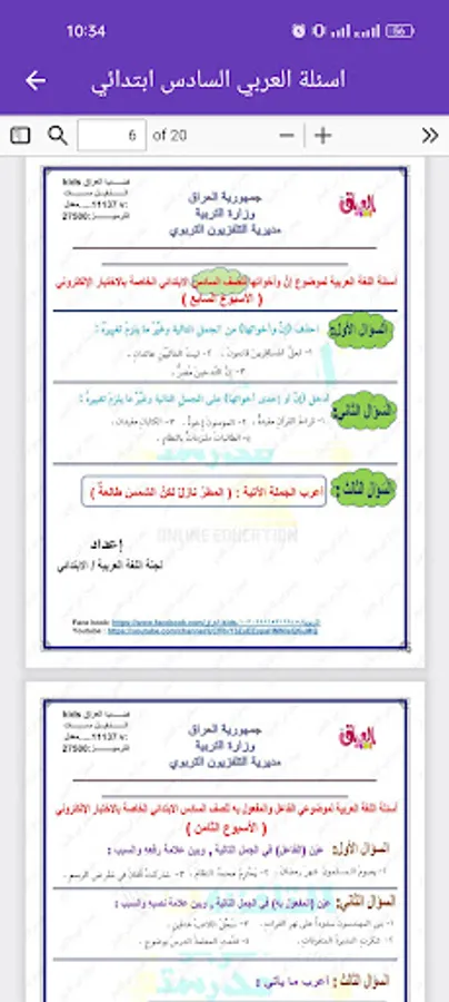Solve the ministerial questions in Arabic for the sixth primary