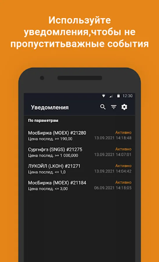 - settings for notifications on the status of orders and various instrument parameters,
