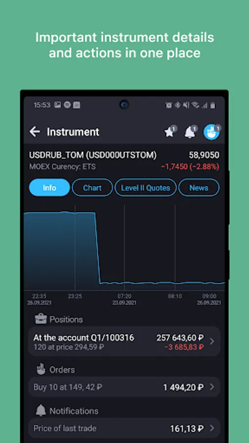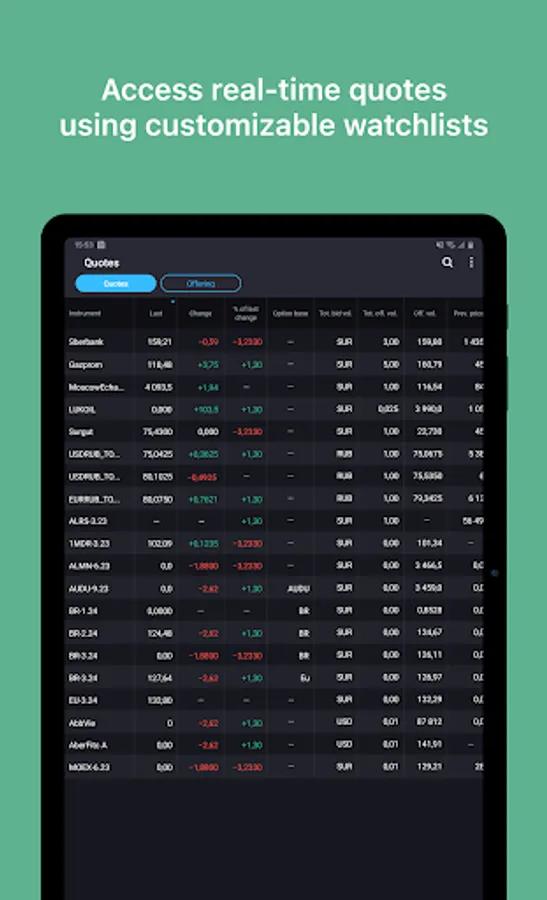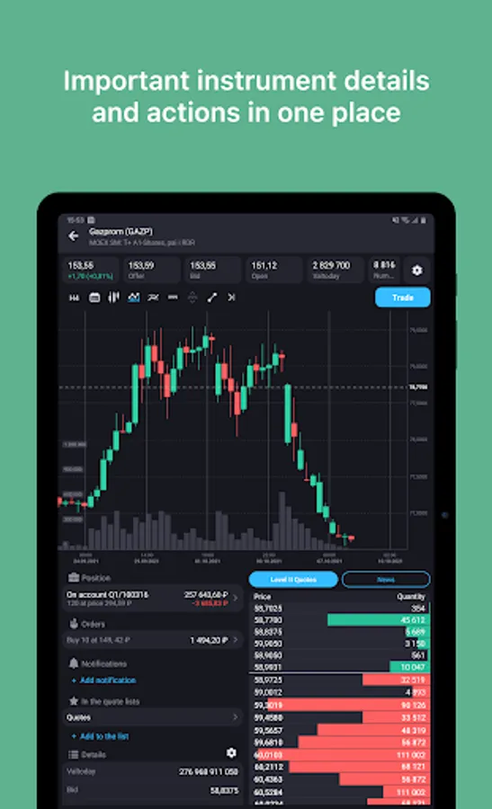 QUIK Android X is a new user application (trading terminal) of QUIK system, which allows to trade financial instruments, to view exchange quotes, to monitor portfolio parameters, and more.
